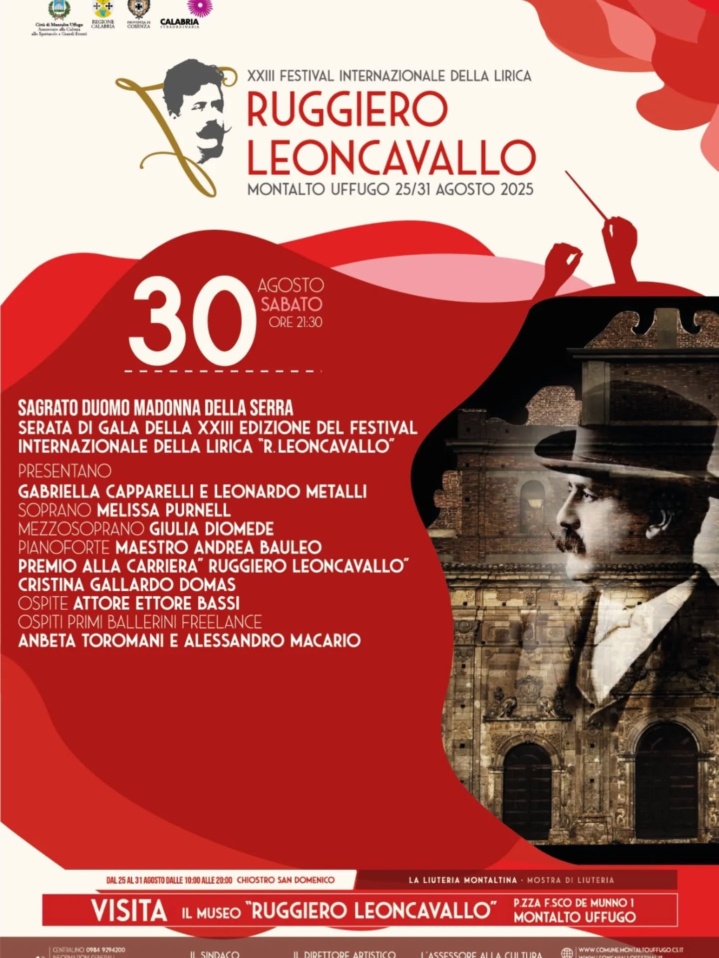 Stasera, 30 agosto 2025, il Festival Internazionale della Lirica accenderà il cuore della città con il suo appuntamento più atteso: il Gran Galà dedicato a Ruggiero Leoncavallo.