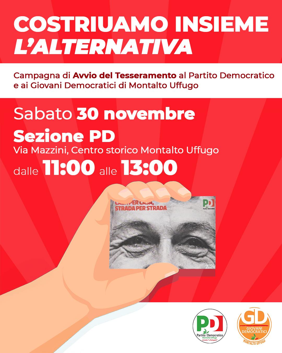 “Vi invitiamo a unirvi a noi e a diventare membri del Partito Democratico di Montalto Uffugo.
