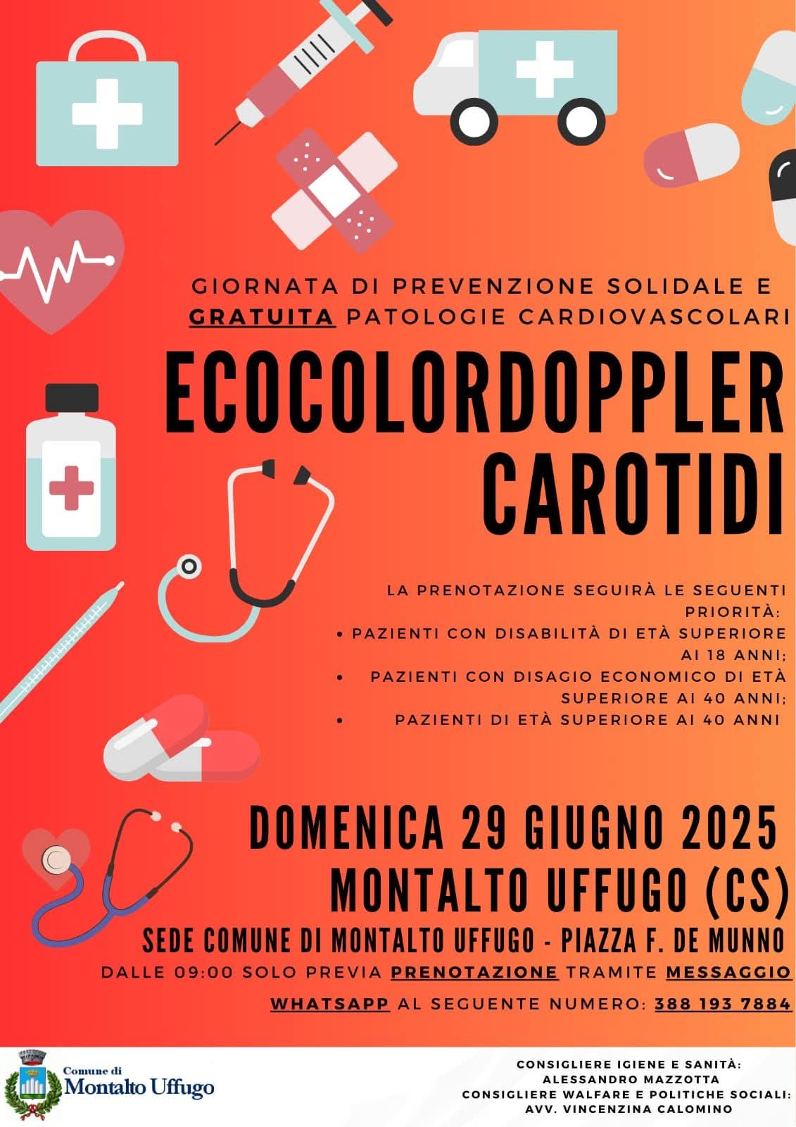Grande attesa da parte della cittadinanza per la nuova giornata gratuita di prevenzione delle malattie vascolari, organizzata dal Comune di Montalto Uffugo