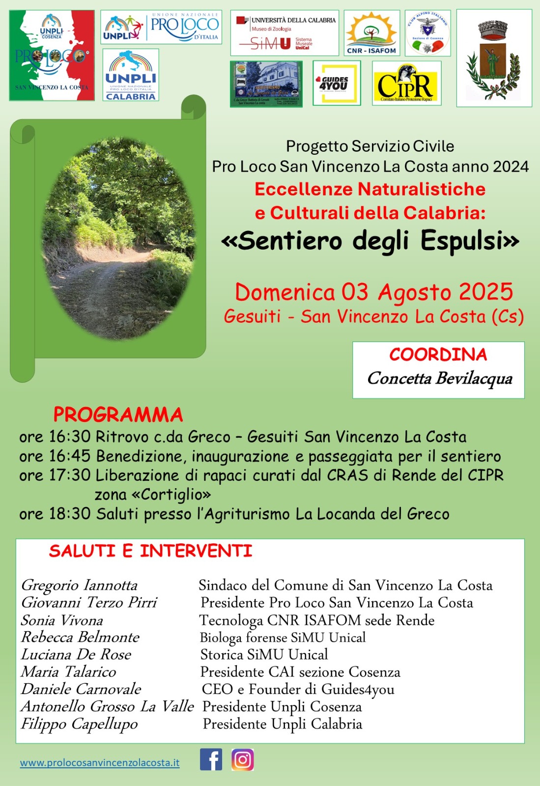 Alle pendici del Parco del Savuto, nella frazione di Gesuiti, oggi, domenica 3 agosto sarà ufficialmente inaugurato il “Sentiero degli Espulsi”, un percorso immersivo che attraversa boschi, antichi tracciati e contrade, offrendo ai visitatori un’occasione unica per riscoprire le radici culturali e ambientali del territorio.
