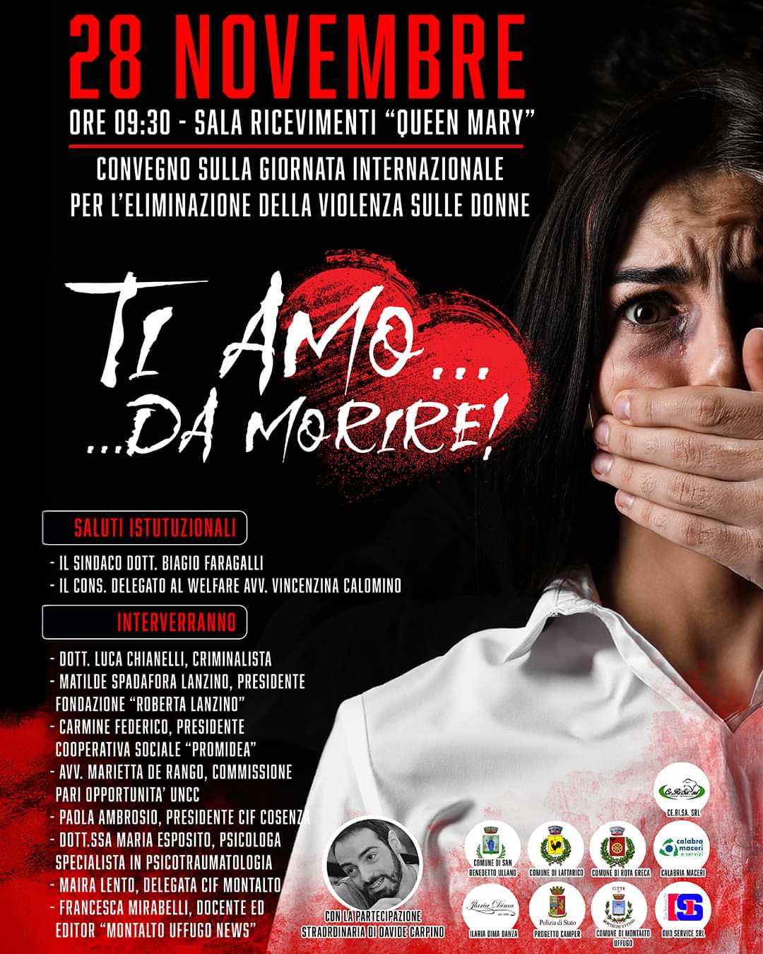Saranno questi i temi discussi all’interno del convegno, dal titolo “Ti amo…da morire!”, in programma per domani, 28 novembre 2024, alle ore 9:30, presso la sala ricevimenti “Queen Mary”, a Montalto Uffugo.