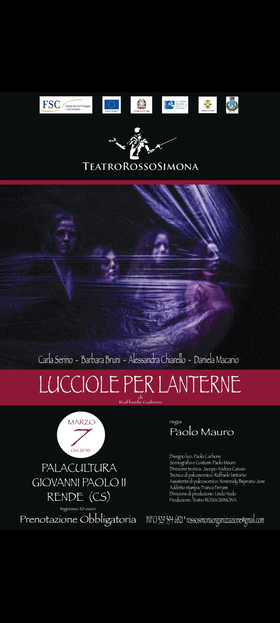 Una produzione della compagnia Teatro Rossosimona fondata e diretta dall’attore e regista Lindo Nudo, che cura anche la direzione artistica della rassegna “Tutti a teatro – Viaggio nei generi teatrali” di casa al teatro “Francesco Gambaro” di San Fili (Cs).